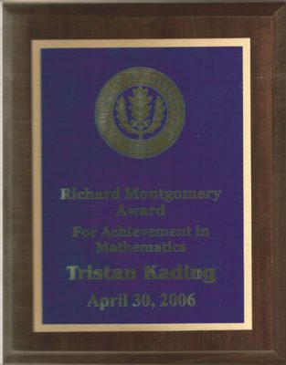 April 30, 2006: Tristan J. Kading is awarded the “Richard Montgomery Award for Achievement in